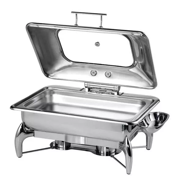 Dieser Chafing Dish bestehend aus Edelstahl ist der perfekte Helfer am Buffet. Der Deckel hält die Speisen lange Zeit warm und frisch. Die Hitzebeständigen Griffe sorgen für ein sicheres Präsentieren der Speisen. Die Reinigung kann ganz leicht mit warmem Wasser und etwas Spülmittel erfolgen. Ebenfalls im Lieferumfang enthalten ist die praktische Löffelablage und ein Brennpastenbehälter.