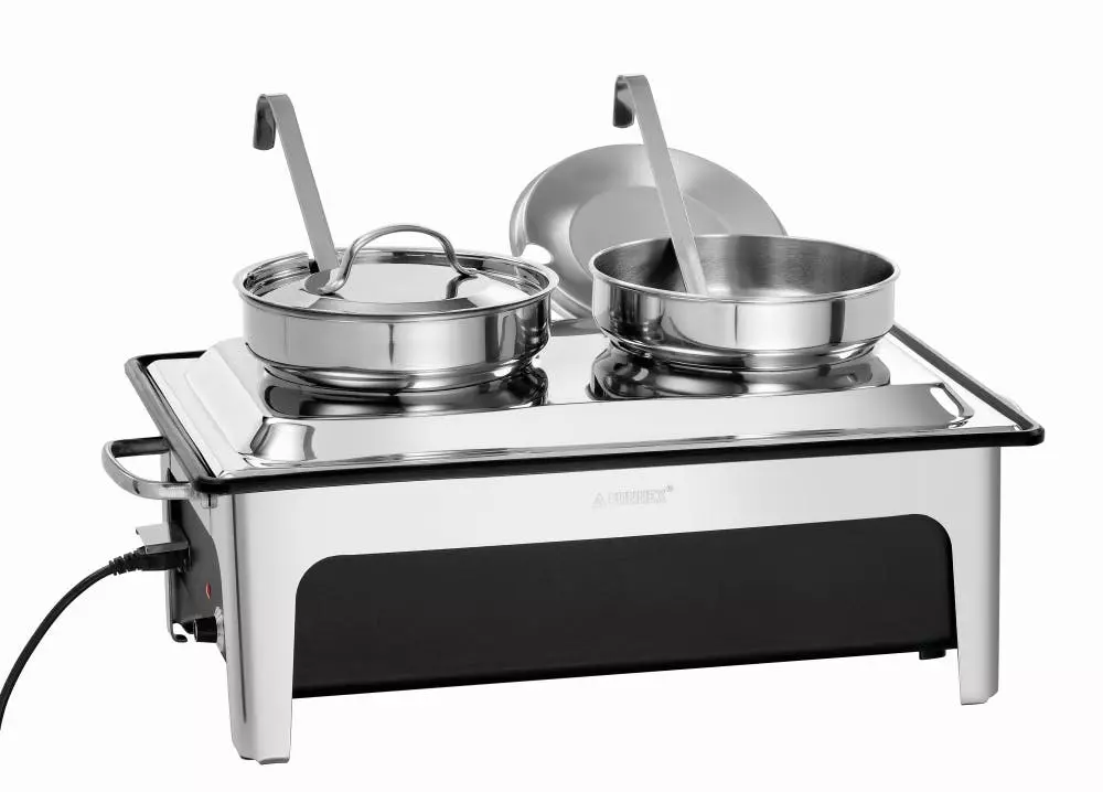 Einsatz für zwei Bain Marie Töpfe (7087), aus Edelstahl, hochglänzend, zur Umrüstung von Chafing Dishes in eine Suppenstation