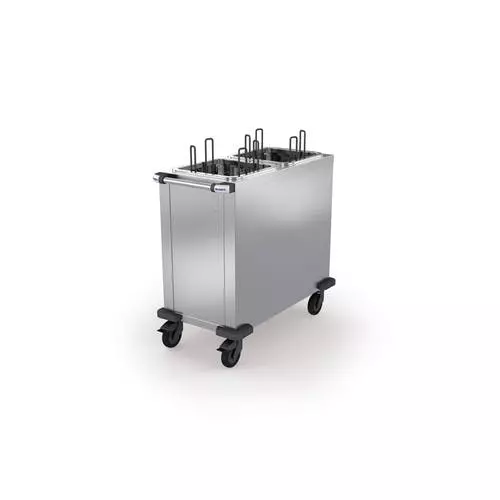 Ablagebord aus rostfreiem Edelstahl für Tabletts, zum Einhängen auf Standard- oder Kinderhöhe. Durch Umdrehen lässt es sich wahlweise auf Standardhöhe oder Kinderhöhe bringen